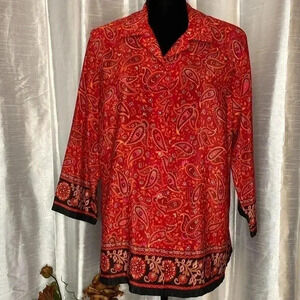 Sag Harbor Women’s Medium Red Paisley Floral 3/4 Sleeve Button Down Blouse