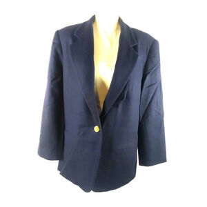Sag Harbor Women's Navy Blue Wool Blazer Size 14 Classic Business Church