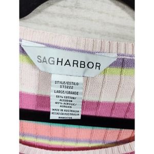 Sag Harbor Women's Pink Striped Lightweight Pullover Sweater Size Large NWT