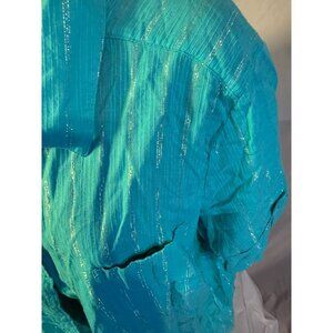 Sag Harbor Womens Plus Size 2X Teal Button Up Shirt top Blouse Bling Sparkle