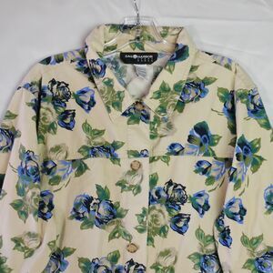 Sag Harbor Womens Size 2X Sport Light Yellow Floral Button Up Jacket