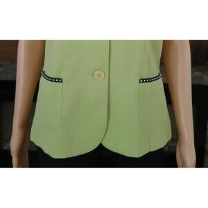 Sag Harbor Women's Size 8 Sleeveless Lime Green Button Up Collar Tank Blouse Top