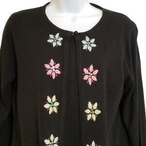 Sag Harbor Womens Sweater Knitted Black Embroidered Flower Vintage