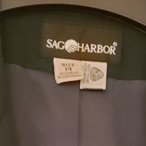 Sag Harbor Single Button Blazer with Lining; 2 Pockets; 100% Wool; Color-Forest Green; Excellent Used Condition; Size 14