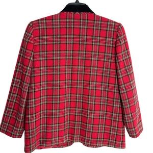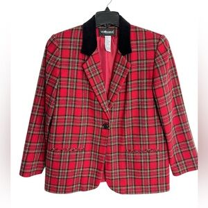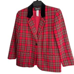 Sag Harbor Wool Blend Tartan Plaid Blazer Jacket Black Velvet Collar 10P Holiday