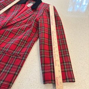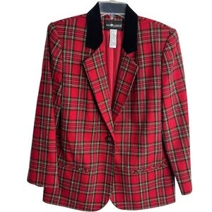 Sag Harbor Wool Blend Tartan Plaid Blazer Jacket Black Velvet Collar 10P Holiday