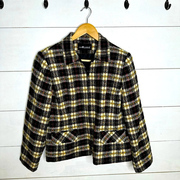Sag Harbor Yellow, Black, Red Plaid Jacket Blazer with Zipper - Size Medium