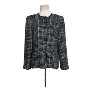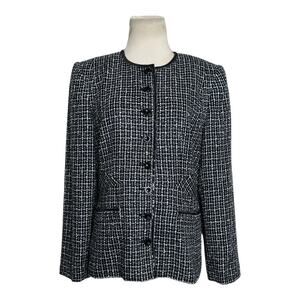 Sag Harbor black tweed sequin trim detail button blazer size 12