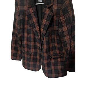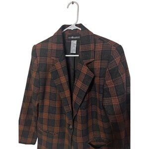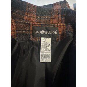 Sag Harbor orange and blue plaid wool blend fall jacket blazer size 8