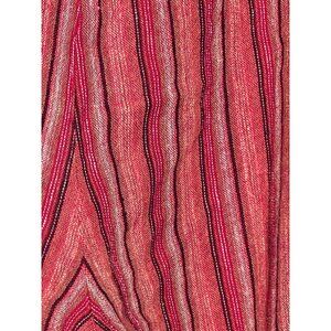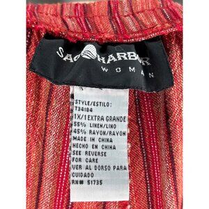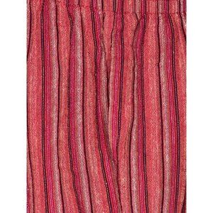 Comfy and stylish Sag Harbor women's capris in orange, black, and red stripes. Made from a breathable blend of linen and rayon, these capris feature an elastic waist, side pockets, wide-baggy legs, Hand wash only, made in China.