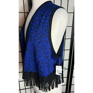 Sag Harbor Blue/Black Cheetah Print Open Front Cardigan