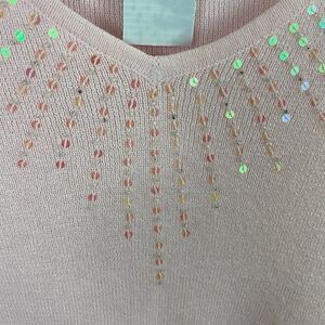 Sag Harbor Sequins Ice Pink V Neck Sweater Size Large