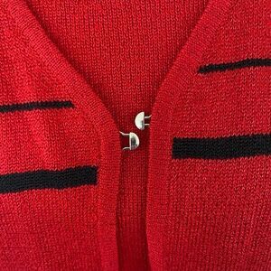 Sag Harbor women XL 3/4 sleeve layered stripe sweater w/clasp close red