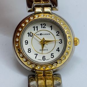 Sag harbor ladies 25mm Quartz analog gold silver rhinestones watch 7” runs