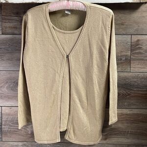 Sag Harbor Ladies Layered Sweater Top, Size S, Tan