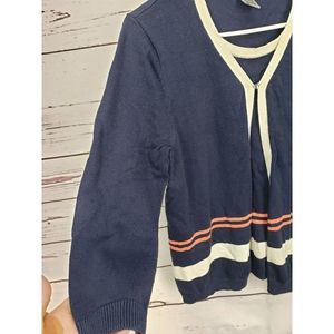 Sag Harbor Navy Blue Red White Striped Vintage Open Front Cardigan Size Medium