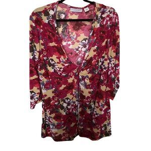 Sag Harbor Stretch Knit Top Beige and Pink Open twist front 3/4 sleeve 1X