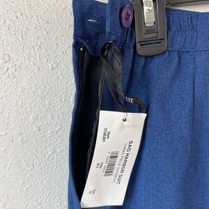 Stylish dress jacket by Sag Harbor in excellent preowned condition. It measures 20 inches armpit to armpit laying flat and 26 inches in length from shoulder to hem. The pants measure 15 inches at the stretch fit waist and have a 30 inch inseam.