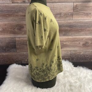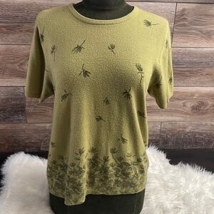 Sag Harbor Ladies Pullover Floral Short Sleeve Scoop Neck Sweater Green Medium-L