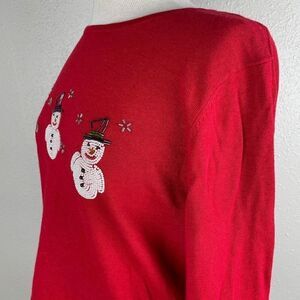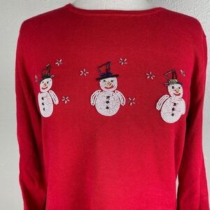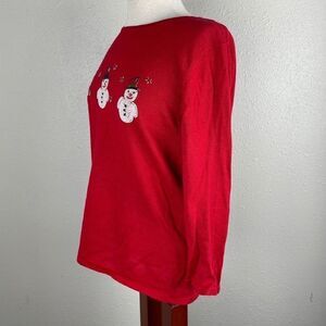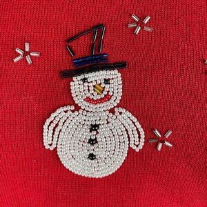 Sag Harbor Red Beaded Snowman Top Size S EUC