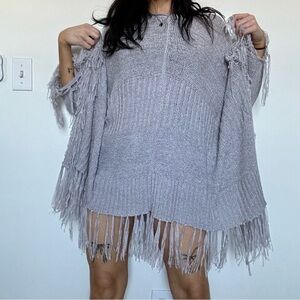 Saga Brand Grey Fringe Poncho