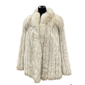 Saga Mink Blue Fox Fur W/Bemberg Lining Hook & Eye Close Coat Sz Medium