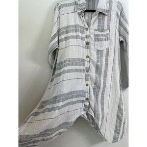 Saga Womens OS Made In Italy 100% Linen Striped Long Shirt Tunic Top Button Back