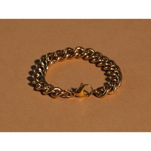 a chunky Cuban chain gold bracelet that is perfect for those who like to add a little flair to their look without going overboard. It's made from 18k gold-plated stainless steel, so it will last for years without fading or tarnishing.