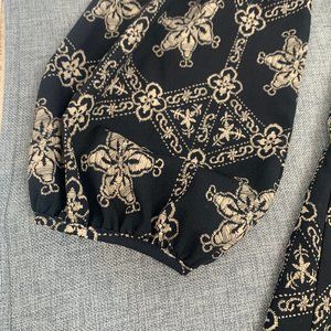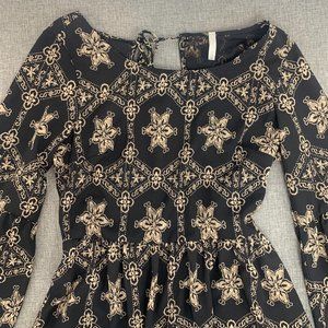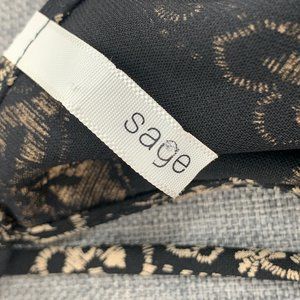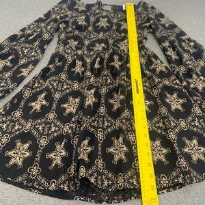 Sage Boho Tan Black Dress Balloon Sleeve Open Back Pleated Small Polyester