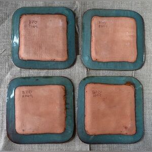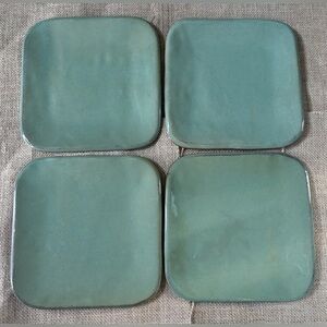 Sage Celadon Green Square Salad Plate Set Signed Art Pottery Cottage Goblin Core
