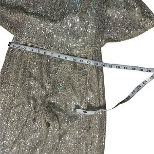 Sage Champagne Sequin Jumpsuit Women’s Small Strapless Wide Leg Party Holiday