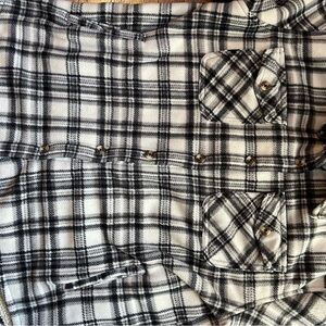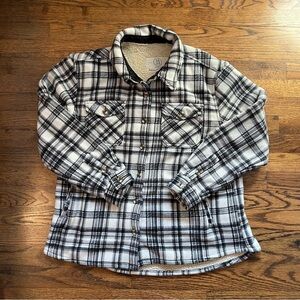 Sage Collective Fleece Button Jacket Womens Large Black Plaid Shacket Sherpa.