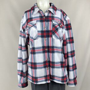 Sage Collective Plaid Shacket Womens XL White Red Blue Sherpa Lined Classic Gorp