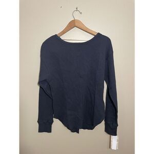 Sage Collective Venture Waffle Thermal Top Long Sleeve Blue Small NWT $60
