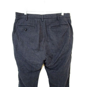 Sage De Cret Navy Blue Linen, Silk Cotton Blend Tweed Dress Pants Men Sz L