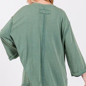 Sage & Fig USA Flag Patch Half Sleeve Top Sage Green 1X 2X 3X