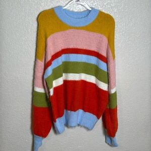 Sage & Fig Women’s Medium Sweater Multi Stripe Soft Fuzzy