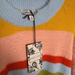 Sage & Fig Women’s Medium Long Sleeve Sweater Multi Stripe Soft Fuzzy Warm NWT