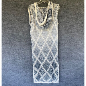 Sage & Flower Long Cardigan Womens Blue White Hooded Geometric Slit Sleeveless