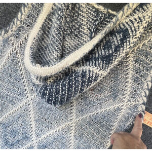 Sage & Flower Hooded Long Cardigan Womens Blue White Geometric Slit Sleeveless