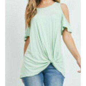 Sage Green Cold Shoulder Top Front Twist Knot Women's Small