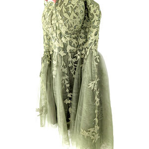 Sage Green Coquette Forest Fairy Lace Tulle Sheer Embellished Corset Dress 18