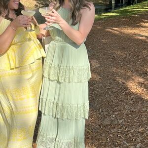 Sage Green Pleated Tiered Lace Maxi Dress
