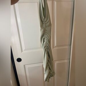 Sage green ribbed drawstring mini dress with cinched siding. Drawstrings were cut to shorter length for tying dress. Fits like a XS/S