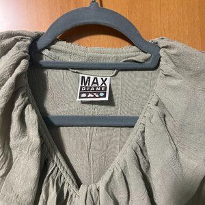 This Max & Diane sage green top is a button down sleeveless blouse with a ruffle details. Pairs great with jeans or trousers!