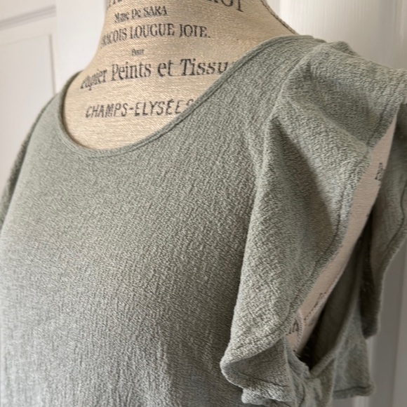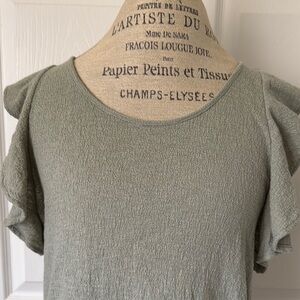 Texture & Thread by Madewell brand womens sage green colored top with ruffle sleeves. Perfect for casual outings. Great condition. Size Large.