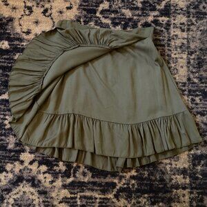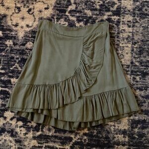 Sage Green Skirt Cross-front Ruffle and Ruffle Hem - Elastic - Slip On - Medium