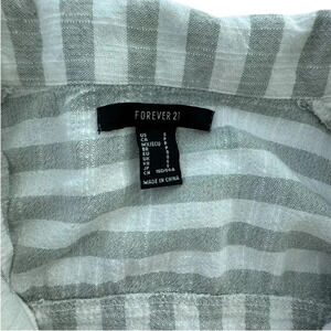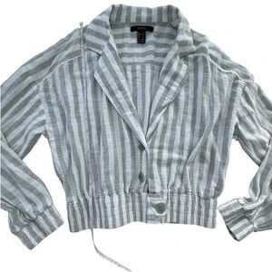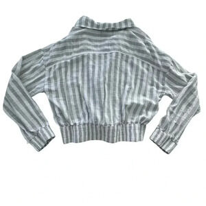 Sage Green and White Stripped Long Sleeves Crop Top with Button Detail. Small