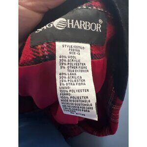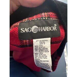 Sage Harbor Womens Wool Blend Plaid Blazer Size 12 Red & Black Acedemia