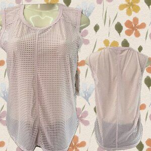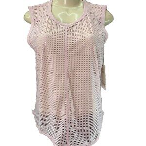 ITEM: Sage L Pink Rose Sheer Perforated Mesh Crew Neckline Wicking Muscle Sleeveless Top